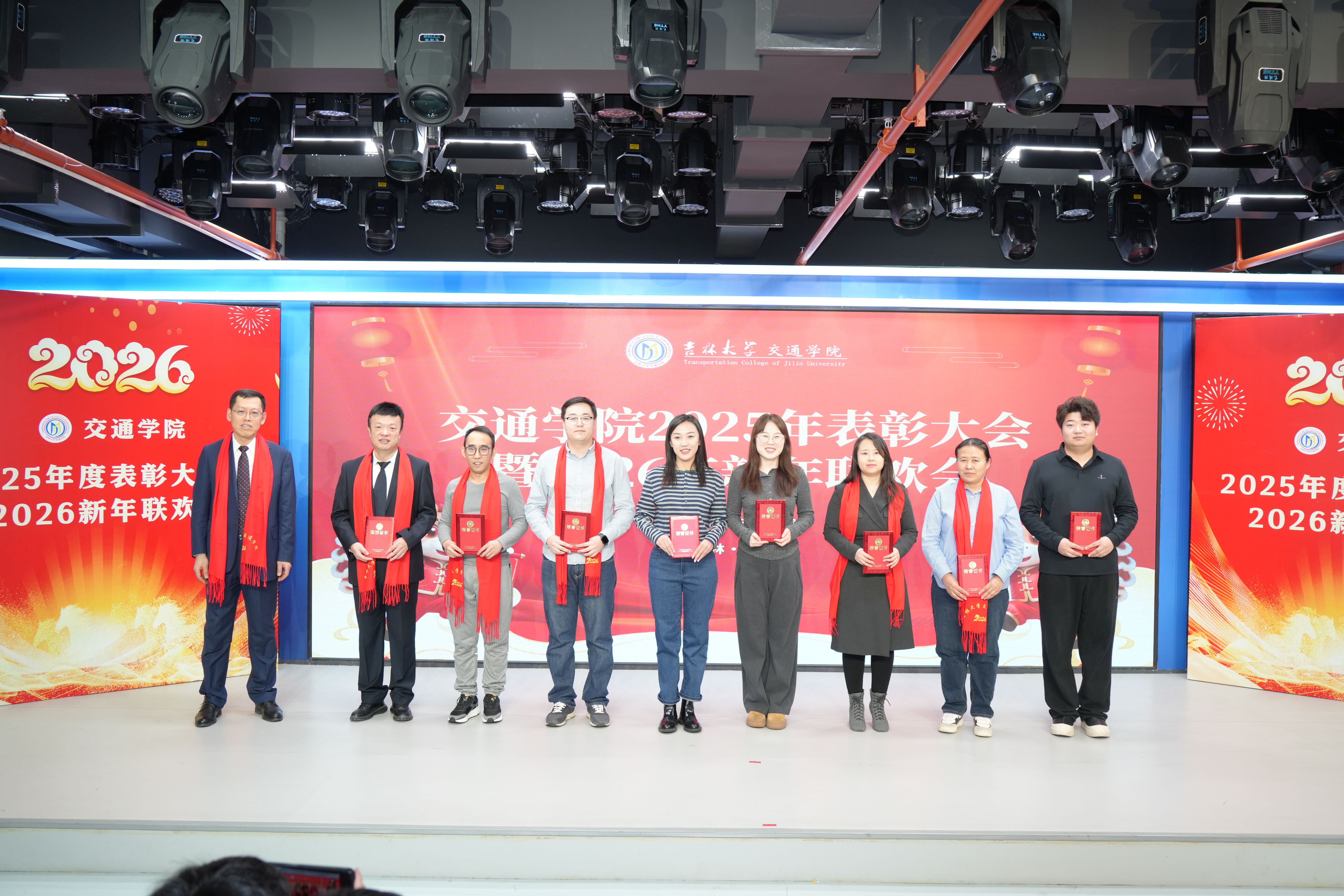 在工程训练中心6楼顺利举办了2025年度表彰大会暨2026新年联欢会。全院教职工齐聚一堂,共同回顾过去一年的工作成果,展望新一年的发展蓝图。投注榜老书记赵桂芹老师、郭学东教授和部分在投注榜工作过的管理干部参加了活动。